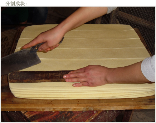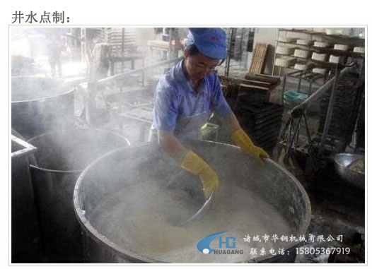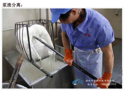 浸泡黃豆、開(kāi)始磨漿,再經(jīng)過(guò)濾漿、煮漿、點(diǎn)漿、上箱、過(guò)鹵、切塊、上扦、晾干等近十道工序.