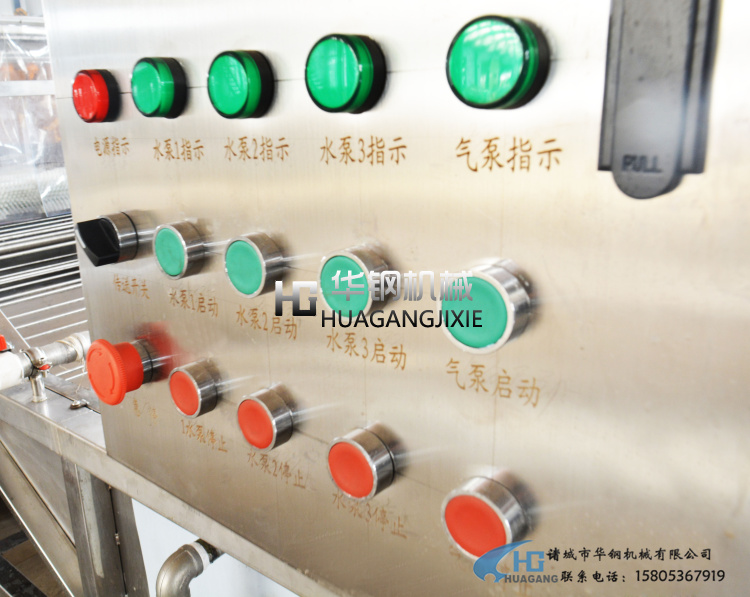 1.設(shè)備帶有循環(huán)水泵和過濾水箱,實現(xiàn)清洗用水循環(huán)使用,尤其是針對火龍果清洗,污泥多,清洗效果好,節(jié)約用水,根據(jù)實際生產(chǎn)情況補充更換新的水;