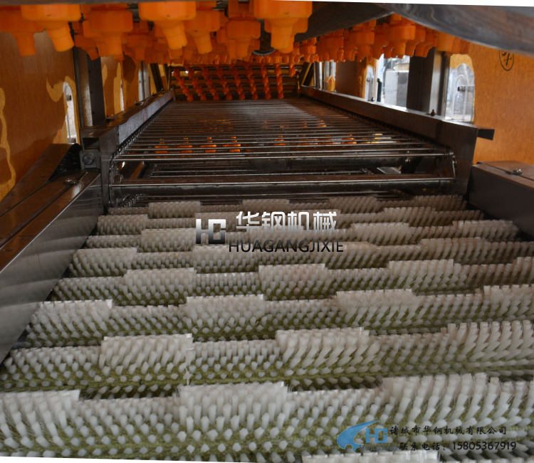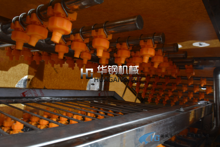 諸城華鋼新款火龍果清洗風(fēng)干機 360度高壓噴頭清洗更透徹火龍果清洗風(fēng)干線設(shè)備特點: