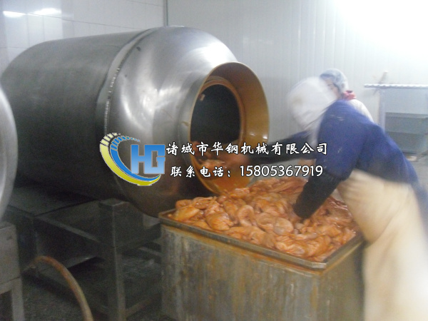 肉制品在滾揉的過程中對肉量都會有一定的限制性,滾揉機一般為滾筒總量的三分之二為合適,如果滾揉過程中添加肉制品的數(shù)量過多則會影響肉制品的加工質(zhì)量,主要是因為肉制品滾揉的數(shù)量過多會導(dǎo)致滾揉時間增長,于此同時料水不能充分的滲入到肉制品的內(nèi)部嚴(yán)重影響肉制品的加工口感,導(dǎo)致滾柔失敗。還有一種原因就是滾揉的肉量過多會導(dǎo)致壓力過大嚴(yán)重影響滾揉機滾筒的正常使用,加大機器的工作壓力縮短滾揉機的使用壽命。