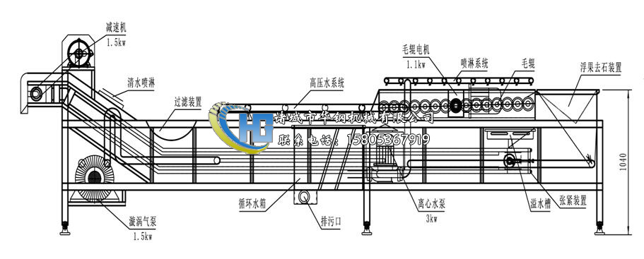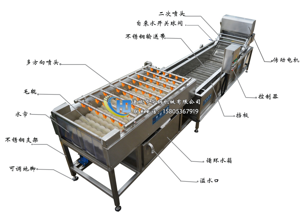 設(shè)備具有清洗能力強(qiáng)、洗凈率高且不損傷物料、節(jié)能省水等優(yōu)點(diǎn)。本設(shè)備除電機(jī)、軸承等均采用不銹鋼SUS304材料制作,完全符合食品加工的衛(wèi)生要求.