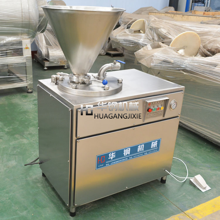 液壓灌腸機是加工腸類制品的設(shè)備,能灌制大、中、小各種規(guī)格的腸制品。此機外形美觀、做工精良、操作方便、使用可靠。機器的料斗、閥門、灌腸管以及整機外包裝均采用不銹鋼制造,符合食品衛(wèi)生要求。