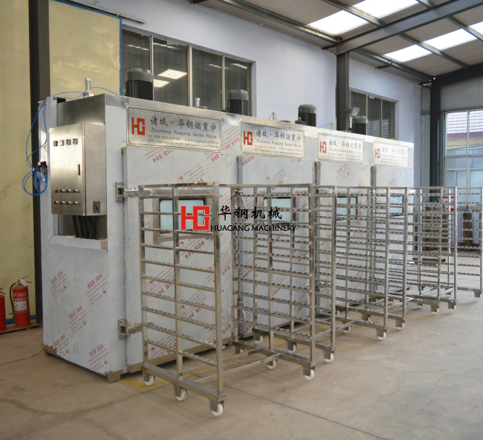 臘肉煙熏爐直銷-臘肉機器一提起臘肉,我們肯定不陌生,有很多人會說不就是豬肉經(jīng)過曬干煙熏后的加工出來的食品嘛,對了,從理論上說可以這么理解,看似簡單的臘肉如果說加工不好的話,臘肉機器那吃起來的口感是大有不同的,有些人喜歡自己用柴火點上火上面加一個架子,把臘肉用繩子栓起來掛在桿上,用扇子一邊閃火一遍熏,可想而知,那柴火揮發(fā)出來的煙灰會隨著風沾腐到食品上,因為我們都知道,木材產(chǎn)生的煙灰里面含有致癌物,長期食用會對身體造成危害,那么,很多人又特別喜歡吃,又擔心吃了對身體不好,那怎么辦呢。哈哈,不用擔心,為了大家身體健康以及加工效率上,我們經(jīng)過準確的研究,計算合理設計出了一種能夠提高工作效率,過濾致癌物,提高產(chǎn)品品質的煙熏爐。