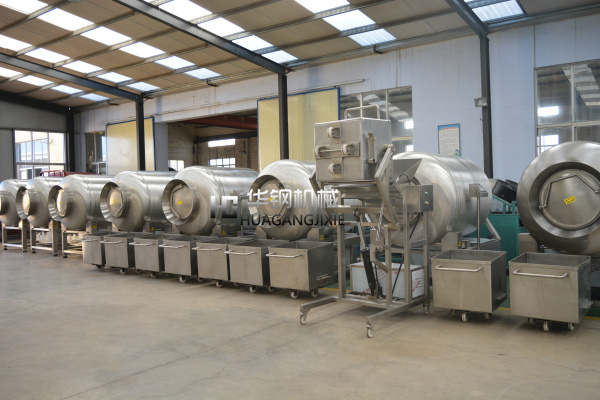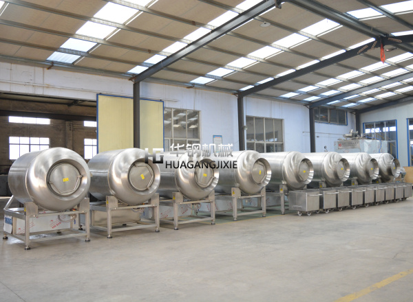 真空滾揉機(jī)是在真空狀態(tài)下,利用物理沖擊的原理,讓肉在滾筒內(nèi)上下翻動(dòng),相互撞擊、摔打,達(dá)到按摩、腌漬作用,使肉均勻的吸收腌漬,提高肉的結(jié)著力及產(chǎn)品的彈性,通過滾揉、按摩能使肉體蛋白質(zhì)分解成水溶性蛋白,易被人體吸收,同時(shí)能使添加料(淀粉等)與肉體蛋白質(zhì)互為融合以達(dá)到肉質(zhì)變嫩,口感好,出口率高。本機(jī)具有肺呼吸功能,讓產(chǎn)品在滾筒內(nèi)膨脹、縮小了往復(fù)運(yùn)動(dòng),改善了肉組織的結(jié)構(gòu),提高了切面效果。