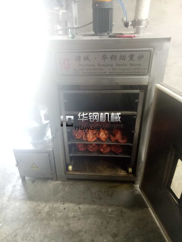 華鋼牌小型煙熏爐用于煙熏肉制品熟食,熏雞,熏鴨、熏鴿、烤腸,烤雞,熏魚,烤鴨,煙熏豆腐干臘肉以及家禽,水產(chǎn)品等等熏制產(chǎn)品,烘干,上色一次成型.煙熏色澤好,口感更佳.質(zhì)量保證,技術(shù)優(yōu)良,操作方便.經(jīng)過煙熏后食品的顏色好看,還有一種煙熏后的香味,讓人感覺香而不膩,也能達(dá)到環(huán)保效果,代替了傳統(tǒng)的煙熏爐方法,節(jié)省了工人的勞動(dòng)力,提高工作效率,更增強(qiáng)了食品的口感及彈性。主循環(huán)風(fēng)扇送風(fēng)均勻,使?fàn)t體內(nèi)溫度均勻,采用設(shè)定參數(shù)方式,通用性廣,自動(dòng)運(yùn)行中的參數(shù)可修正。