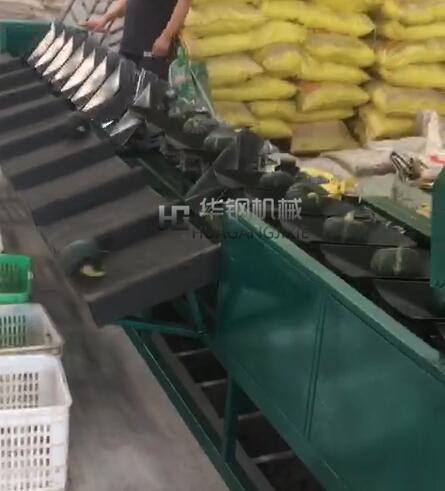 現(xiàn)在市面上一種小南瓜,又圓又甜,深受消費(fèi)者喜愛。有些南瓜批發(fā)商需要把這種上乘的小南瓜進(jìn)行重量分級(jí)。華鋼公司生產(chǎn)的南瓜分選機(jī),分選效果好,準(zhǔn)確。