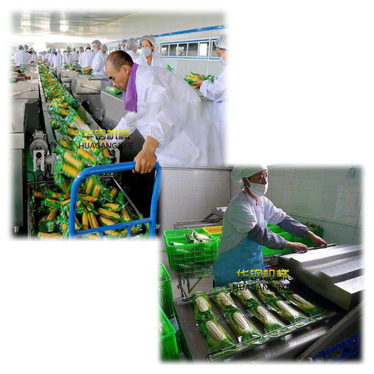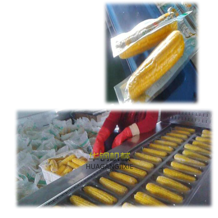 漂燙后的果穗必須及時(shí)冷卻,否則由于溫度過高會(huì)使玉米粒失水而出現(xiàn)皺褶,影響外觀形象、品質(zhì)。一般用清水噴淋或在涼水中浸泡3-5分鐘的方法,使果穗表面溫度下降,以保證裝袋時(shí)果穗的溫度在50℃左右。相反,溫度過高,在真空裝袋時(shí)水分氣化,產(chǎn)生蒸汽,對(duì)封口質(zhì)量產(chǎn)生不良影響。降溫后裝袋,冷卻后的果穗,改作他用。裝袋時(shí)要迅速,并使果穗大頭向下,推到包裝袋的底部;不能將玉米漿等雜物殘留在封口處,以免影響封口質(zhì)量。