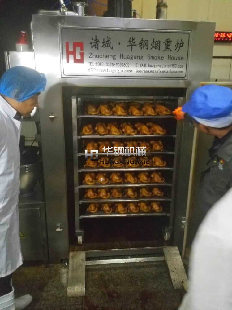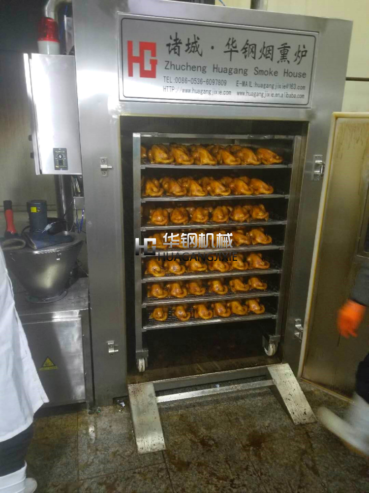 華鋼糖熏爐是各種香腸,熟食,熏雞、烤鴨等肉產(chǎn)品不可缺少的設(shè)備之一,具有干燥、蒸煮、烤、煙熏、排風(fēng)等功能。根據(jù)客戶的反饋以及市場的需求,經(jīng)過多年的摸索探索研制生產(chǎn),煙熏的過程縮短,提高生產(chǎn)效率;并能控制煙熏料的量,幫助生產(chǎn)企業(yè)有效控制了成本,對產(chǎn)品進(jìn)行了性能更高,設(shè)備更合理的改進(jìn),使其加熱速度和煙熏效果都達(dá)到了理想的效果