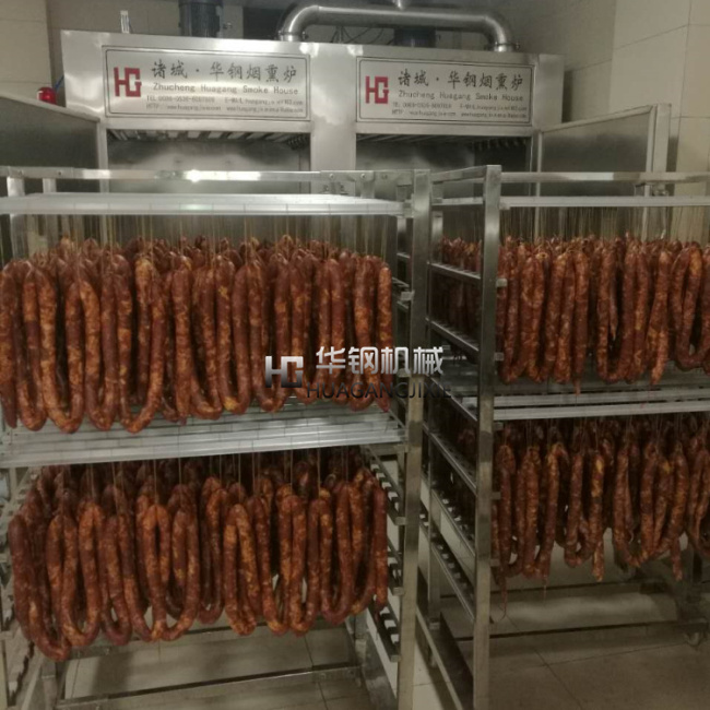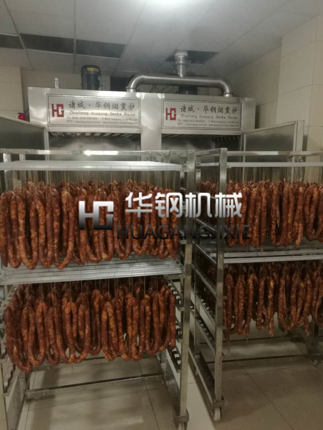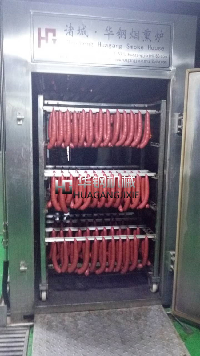 大家對于煙熏產(chǎn)品應(yīng)該都不陌生,尤其是煙熏火腿和豆干,另外還有煙熏雞翅、鴨脖以及魚制品,之所以美味,歸功于煙熏設(shè)備----華鋼煙熏爐,食品的煙熏蒸煮等工序都在主機內(nèi)進行,其上部設(shè)有電動風(fēng)機,多功能煙熏箱電動機設(shè)有高速和低速旋轉(zhuǎn),使盤管加熱器的熱量和低壓蒸汽在爐內(nèi)強制循環(huán),控制爐內(nèi)煙量和溫度均勻。爐內(nèi)設(shè)有溫度傳感器,用于自動檢測蒸煮、烘干和煙熏溫度.但是有一個問題,就是時間久了,煙熏爐內(nèi)部的煙油越來越多,不清理的話,會容易堵住進煙管道,造成煙霧進不了箱體;除了傳統(tǒng)了用熱堿水清理爐內(nèi),拆卸煙筒管道之外 就沒有其他辦法了嗎?答案是否定的。華鋼公司根據(jù)多年市場經(jīng)驗,自主研發(fā)生產(chǎn)的新型煙熏爐 煙熏管道部分加了水過濾裝置,不僅可以過濾灰塵,還有效的保護了進煙管道的清潔。給客戶解決了清理煙油這一大問題。