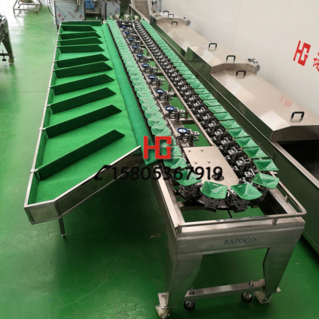 不銹鋼款水果稱重分選機 各種不同的水果稱重分選機 采用天平與杠桿原理,利用盛料器重量與砝碼器所設(shè)定秤量,以游動時的移位與測量達到選擇重量的分等分級。在全自動的傳送中,快速正確的對各種需要分級的果蔬稱重分選,例如火龍果、梨、蘋果、芒果、桃、柑橘、沙糖桔、獼猴桃、西紅柿、馬鈴薯、地瓜、李子、柿子、洋蔥等,產(chǎn)生確的分級。不但秤量確,而且具有不傷果實,效率高,易操作,使用范圍廣等特點,更能提升果品品質(zhì),增強果品市場競爭力,是農(nóng)產(chǎn)品分級制度的機器設(shè)備。