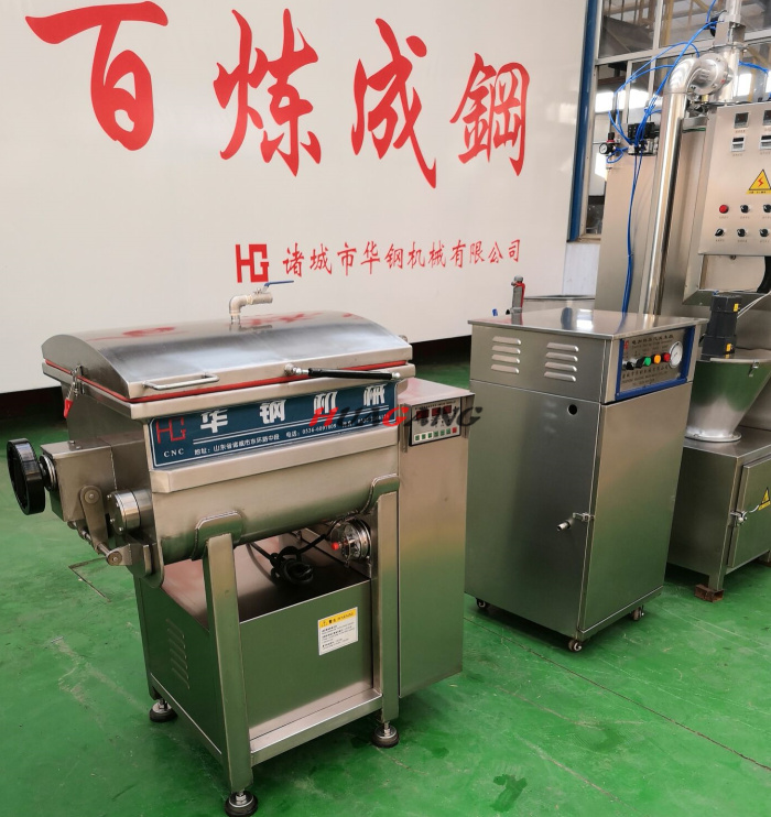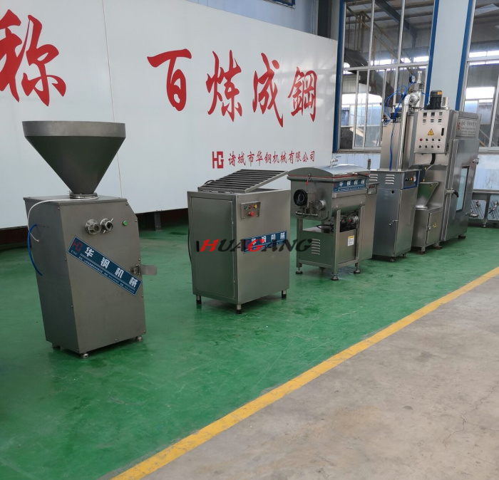 制作紅腸的設(shè)備較簡(jiǎn)單,只需絞肉機(jī)、真空拌餡機(jī)、灌腸機(jī)、冰箱、熏蒸爐即可。