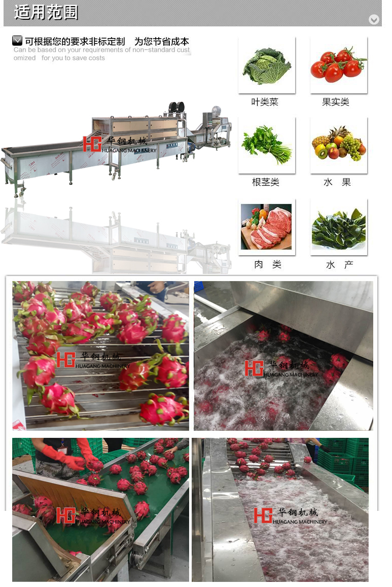 2. 火龍果清洗機(jī)效率高,占地面積小,安全可靠。