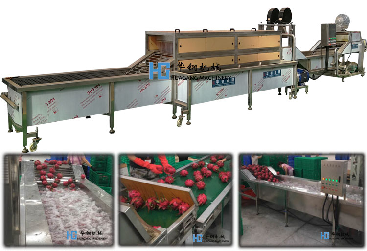 果園新鮮摘下來的火龍果上有很多泥和黑色雜質(zhì),為了確?;瘕埞砻婧每此赃M(jìn)行火龍果的清洗是非常有必要的.華鋼公司根據(jù)多年生產(chǎn)火龍果清洗線經(jīng)驗,結(jié)合客戶產(chǎn)品品種不同以及清洗方式的不同,研發(fā)出新型火龍果清洗生產(chǎn)線。