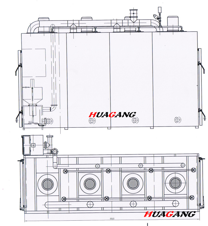 隧道式煙熏爐 4 車,隧道型布置。