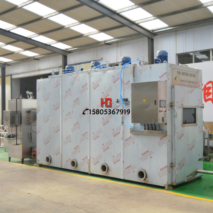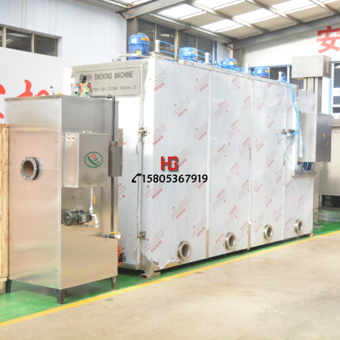 煙熏爐是各種香腸,臘肉,熏雞、烤鴨等肉產(chǎn)品,煙熏豆腐干等不可缺少的設(shè)備之一,具有蒸,烘烤、煙熏、排風等功能。根據(jù)客戶的反饋以及市場的需求,經(jīng)過多年的摸索探索研制生產(chǎn),加熱升溫裝置有蒸汽加熱或者電熱管加熱,同時集成了循環(huán)控制,發(fā)煙,烘烤干燥等系統(tǒng),煙熏的過程縮短,提高生產(chǎn)效率;并能控制煙熏料(果木,木屑,稻殼米糠,白砂糖)的量,幫助生產(chǎn)企業(yè)有效控制了成本,對產(chǎn)品進行了性能高,設(shè)備更合理的改進,使其加熱速度、烘干效果、煙熏效果都達到了理想的效果。