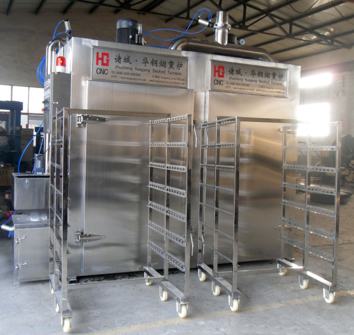 華鋼煙熏爐去掉煙熏功能的煙熏爐是一臺(tái)烘烤爐,一般的醬板鴨和烤鴨用的都是烘烤爐,也有一部分客戶會(huì)選擇帶煙熏功能,這點(diǎn)用戶朋友可以選擇。