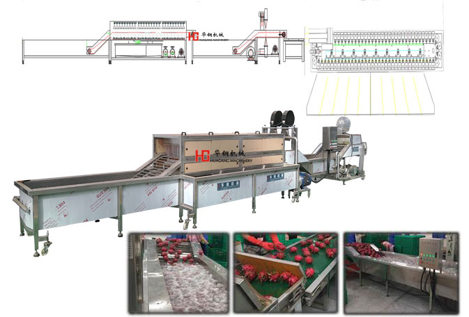 1. 火龍果噴淋清洗機(jī)省水,省電,省時(shí),干凈衛(wèi)生,不損壞產(chǎn)品。