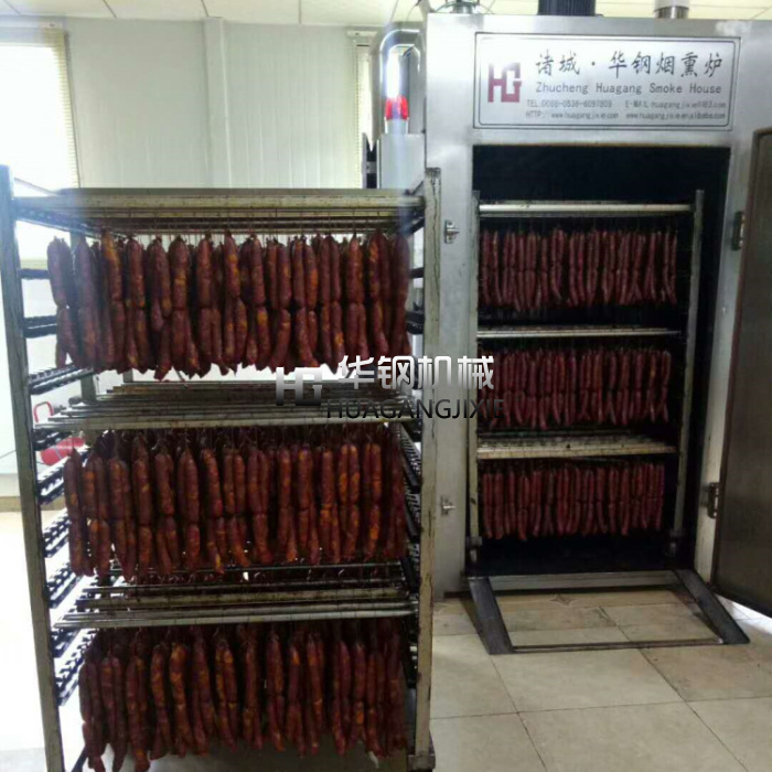 在臘肉生產(chǎn)的過(guò)程中,煙熏是十分重要的環(huán)節(jié),它對(duì)產(chǎn)品的色澤、風(fēng)味有很大的影響,而傳統(tǒng)的柴火加熱熏肉方法是無(wú)法使得臘肉熏制均勻,同時(shí)煙灰可能粘連在肉品上,影響臘肉的口感。隨著市場(chǎng)上煙熏爐的出現(xiàn),進(jìn)而解決了傳統(tǒng)熏制的弊端。市場(chǎng)上煙熏爐除了具有臘肉熏制的功能,還具有蒸煮、干燥、烘烤、排風(fēng)、清洗等功能,可謂是一機(jī)多用。