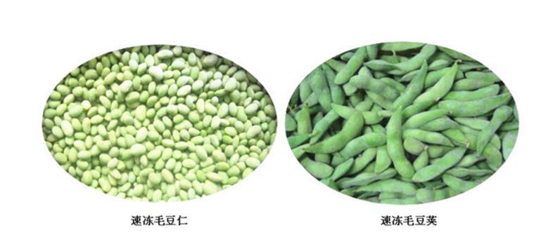 豌豆去殼— 挑選— 清洗 — 漂燙 — 冷卻—瀝水—預冷—速凍—包裝—冷凍