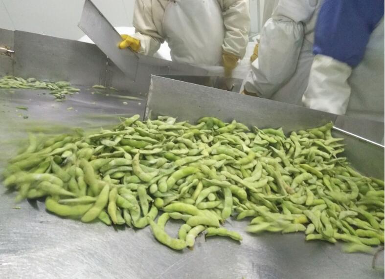 8、速凍:經(jīng)預冷后經(jīng)過速凍機速凍,速凍溫度控制在-36度以下,保證豌豆產(chǎn)品的中心溫度在18分鐘內(nèi)降至-18度以下。
