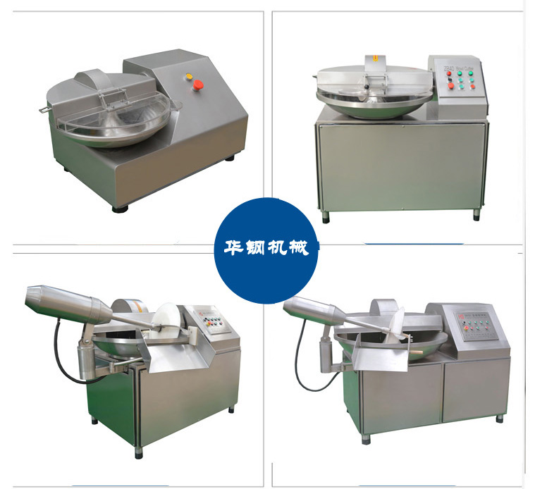高低速斬拌機是利用斬刀高速旋轉的斬切作用,將肉斬成肉餡或肉泥狀,還可以將肉、輔料、水一起攪拌成均勻的乳化物。本公司生產的斬拌機的刀速、鍋速、斬刀與轉鍋的間隙達到的組合,使斬切產品細度好、升溫小、斬拌時間短。斬拌機斬刀的鋒利和高速都是您在使用過程中要時刻注意的,希望您制定的斬拌工藝合乎斬拌機的技術參數(shù),過多的裝料或一盤斬拌時間過長都不會達到理想的工藝效果,冰肉斬切尤其要慎重,建議您斬切冰肉時要先將塊狀變成片狀,或斬拌半小時解凍小塊肉。切忌斬大塊冰肉,以免發(fā)生損刀事故。正確合理的使用斬拌機會延長其各個部件的使用壽命。