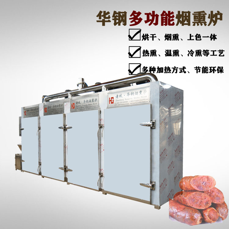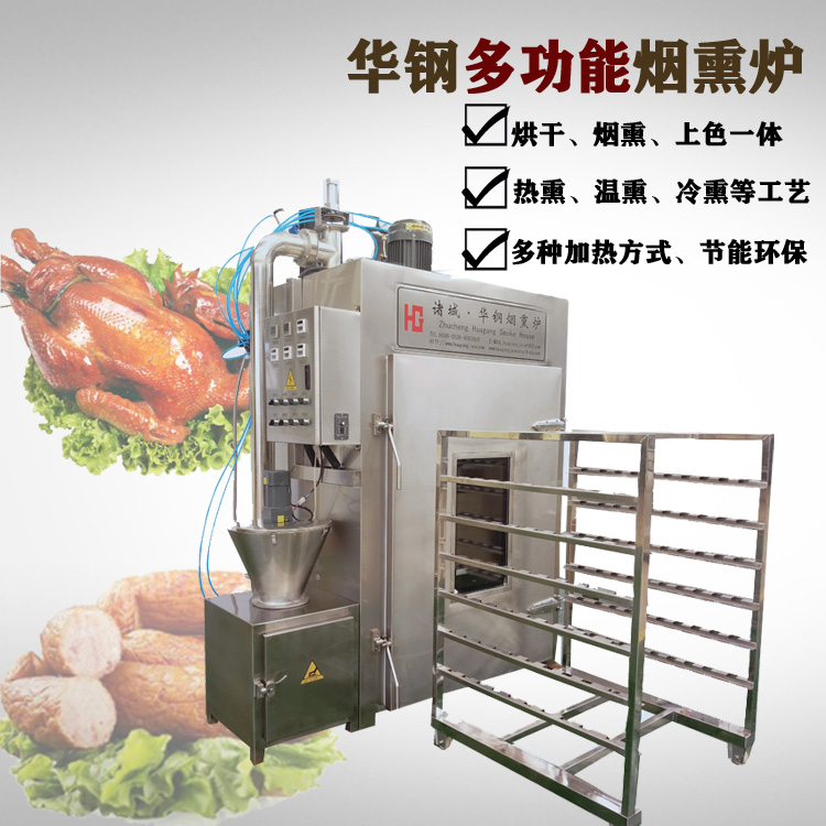 諸城華鋼機械生產(chǎn)的煙熏爐可以用于食物的蒸煮,烘干,煙熏,上色,可以用于加工肉制品,豆干制品,還有腸制品,使用范圍廣。型號有30型 50型 100型 150型 200型 1000型可以根據(jù)客戶的需要量身定做。分為內(nèi)置發(fā)煙和外置發(fā)煙,加熱方式有電加熱和蒸汽加熱的兩種。