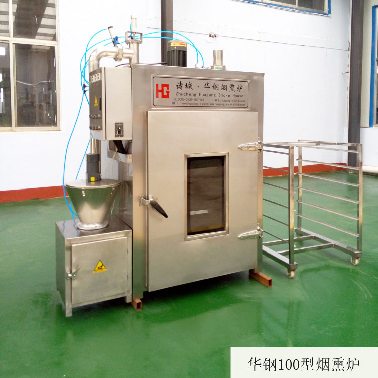熱熏法溫度為50~85℃,通常在60℃左右,熏制時(shí)間4~6小時(shí),是應(yīng)用較廣泛的一種方法。因?yàn)檠频臏囟容^高,制品在短時(shí)間內(nèi)就能形成較好的煙熏色澤。熏制的溫度必須緩慢上升,不能升溫過急,否則產(chǎn)生發(fā)色不均勻,一般灌腸產(chǎn)品的煙熏采用這種方法。