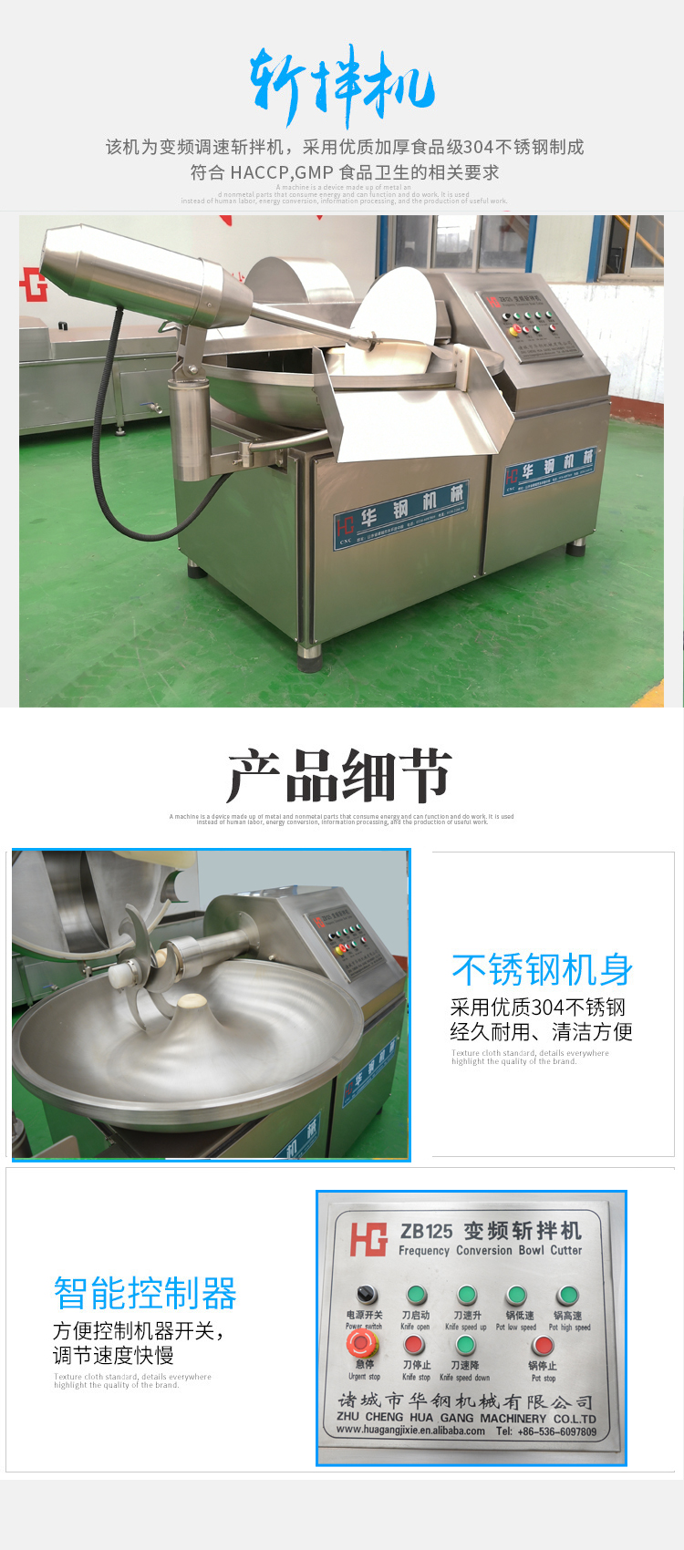 斬拌機(jī)是肉制品生產(chǎn)工藝中的關(guān)鍵設(shè)備,高速旋轉(zhuǎn)的斬拌刀可把原料肉斬拌成細(xì)膩的糜狀,同時(shí)可以把其它輔料攪拌均勻,是肉類加工場(chǎng)等單位所不可缺少的肉類加工機(jī)械。