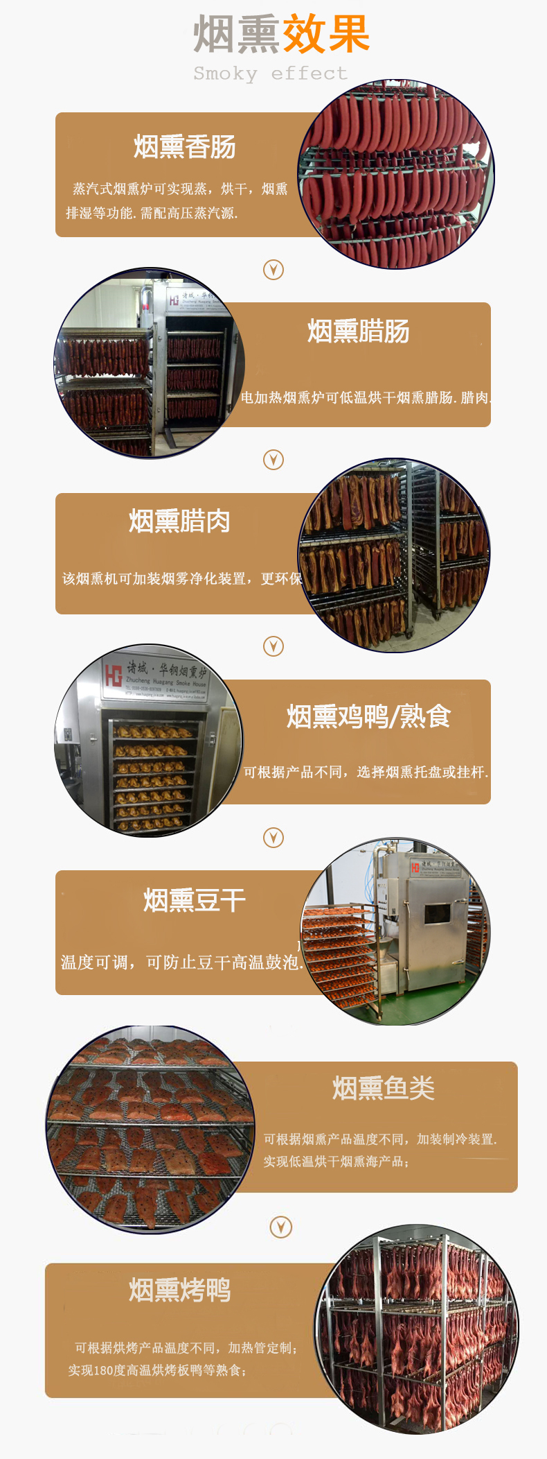 食品煙熏爐,香腸烘干機可以按照煙霧的狀態(tài)開區(qū)分,按照煙霧的狀態(tài)可以分為木熏法和液薰法,液薰法這種方法不需要發(fā)煙裝置,直接將煙熏液注入其中。木熏法就是把木屑倒入料斗,電機帶動著攪拌齒輪轉(zhuǎn)動,木屑降落到電加熱管上又不能到到燃點而產(chǎn)生大量煙霧。 食品煙熏爐全部采用電動控制,易學、好掌握,只要將生產(chǎn)該產(chǎn)品所需溫度,時間正確的設(shè)定,啟動工作按鈕就可以完成從烘烤、蒸煮、煙熏等多道工序,在保證提高勞動生產(chǎn)率的同時,方便的進行各種肉類制品深加工。 食品煙熏爐設(shè)備均采用304不銹鋼制作而成,耐化學介質(zhì)的腐蝕,為廣大食品行業(yè)的客戶帶去了更多的利潤.烤腸煙熏爐是加工香腸必不可少的一臺設(shè)備,它能幫助香腸起到增加特殊香味、促進肉制品發(fā)色作用,以及脫水干燥防止脂肪氧化的作用, 整機采用12個厚的大玻璃視窗,整機設(shè)計新穎、加工精細、美觀、耐用.