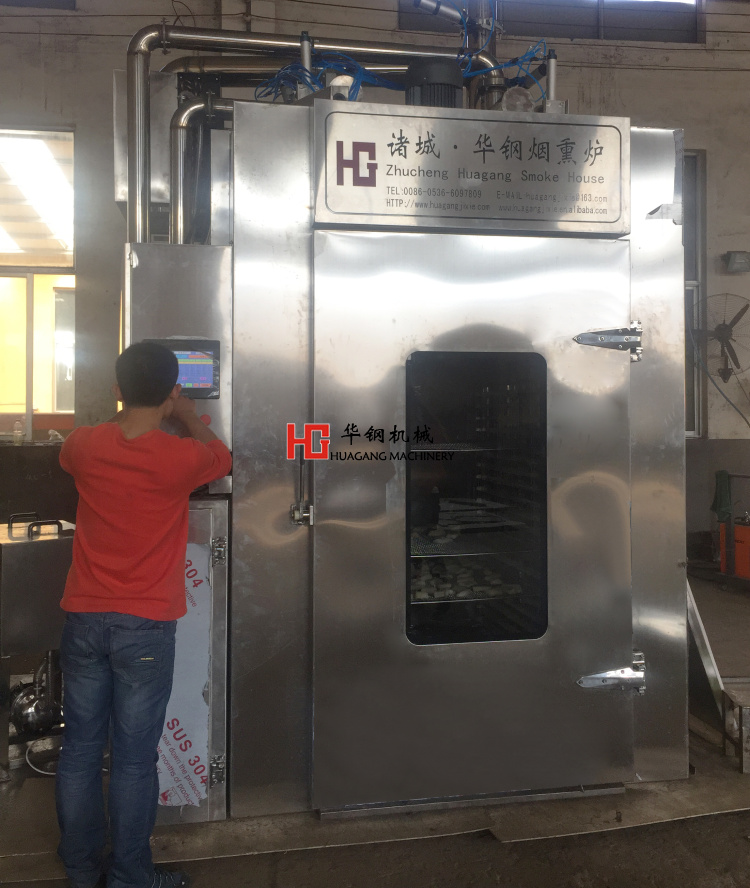 煙熏根據(jù)處理溫度的高低可將煙熏分為冷熏、溫熏、熱熏,這三者沒有明顯的界線,各自劃分的溫度區(qū)域也不盡相同。在日本把0~30℃定為冷熏,30~50℃為溫熏,50~80℃為熱熏,80℃以上的稱為烘熏。加熱和干燥對發(fā)生美拉德反應(yīng)起著促進作用,因此熱熏產(chǎn)品的色澤明顯好于冷熏,但是熱熏時由于溫度過高,肌肉蛋白質(zhì)要產(chǎn)生熱變性,脂肪熔化,使產(chǎn)品品質(zhì)發(fā)生改變。另外,隨著爐溫的升高,被煙熏的肉制品表面迅速干燥,表面過早干結(jié),反而會阻礙對煙霧的吸收,而冷熏則不會引起上述變化。一般情況下,熱熏時間短,冷熏時間長,對于非加熱的產(chǎn)品常采用冷熏的方式,有的產(chǎn)品需要冷熏半日至數(shù)日之久。如果主要想提高煙熏香味的嗜好性,又想延長制品的保存期,也可以采用溫熏的方式,它可以有利于特定的、有益菌為主菌群的形成。至于采用何種熏制方式,這與產(chǎn)品的類型及人們的嗜好口味有關(guān)。