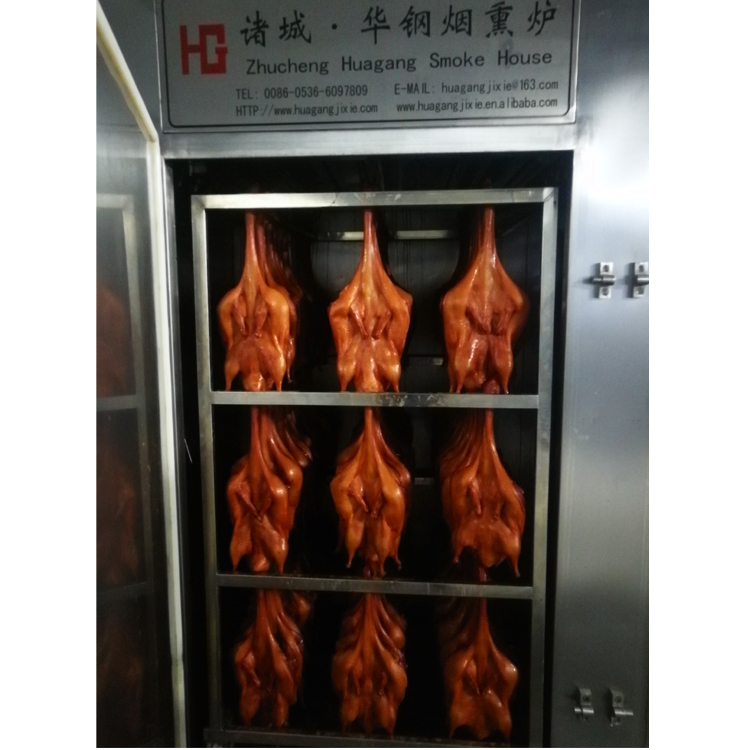 煙熏爐是各種香腸,臘肉,熏雞、烤鴨等肉產(chǎn)品,煙熏豆腐干等不可缺少的設(shè)備之一,具有蒸,烘烤、煙熏、排風等功能。根據(jù)客戶的反饋以及市場的需求,經(jīng)過多年的摸索探索研制生產(chǎn),加熱升溫裝置有蒸汽加熱或者電熱管加熱,同時集成了循環(huán)控制,發(fā)煙,烘烤干燥等系統(tǒng),煙熏的過程縮短,提高生產(chǎn)效率;并能控制煙熏料(果木,木屑,稻殼米糠,白砂糖)的量,幫助生產(chǎn)企業(yè)有效控制了成本,對產(chǎn)品進行了性能高,設(shè)備更合理的改進,使其加熱速度、烘干效果、煙熏效果都達到了理想的效果。從而為用戶提供了更可靠、更衛(wèi)生和經(jīng)濟的選擇。該設(shè)備整體設(shè)計新穎、加工精制,美觀。整體采用不銹鋼制作,采用耐高溫聚氨酯發(fā)泡材料保溫,保溫效果好、升溫快,節(jié)約能源。該設(shè)備的循環(huán)系統(tǒng)采用雙速循環(huán)風機,合理的分配進風、排風、補風機構(gòu),大限度優(yōu)化箱體內(nèi)部氣流循環(huán)狀態(tài),確保整個箱體物料加工過程中可控、均勻,達到了低耗、快速的產(chǎn)出。而關(guān)于電氣控制方式,該設(shè)備采用可編程控制器及繼電器,電磁閥等關(guān)鍵電氣元件均采用進口產(chǎn)品,操作簡便,可自動控制時間,爐內(nèi)溫度。具有優(yōu)異的發(fā)煙及循環(huán)系統(tǒng),可使爐內(nèi)的煙霧均勻分布,從而使肉制品著色均勻,色澤美觀,保證產(chǎn)品具有較高的出品率。符合國內(nèi)消費者的消費意識和相關(guān)部門對此類產(chǎn)品在食品安全的相關(guān)規(guī)定。醬板鴨煙熏爐