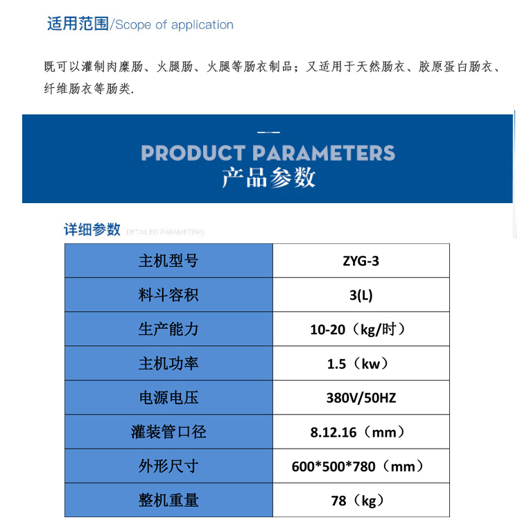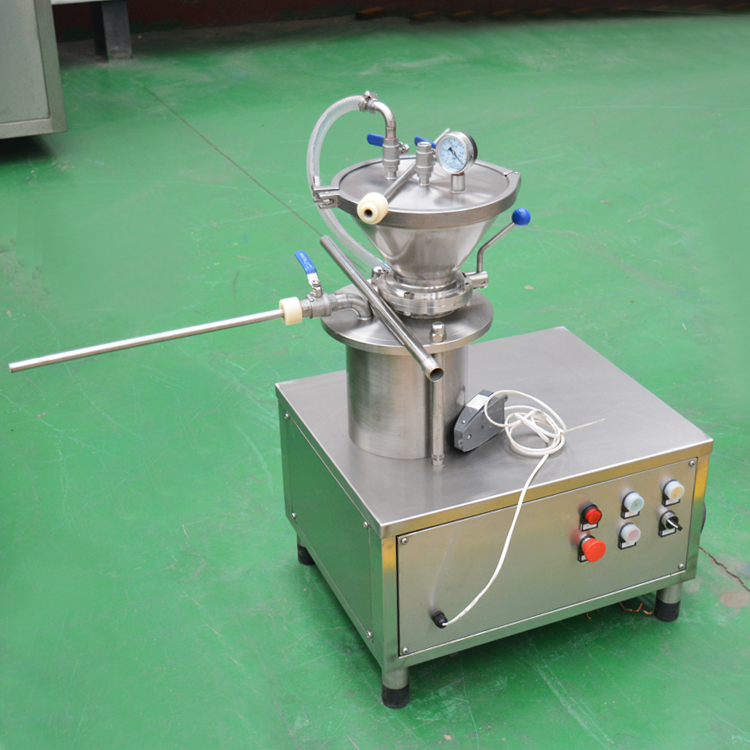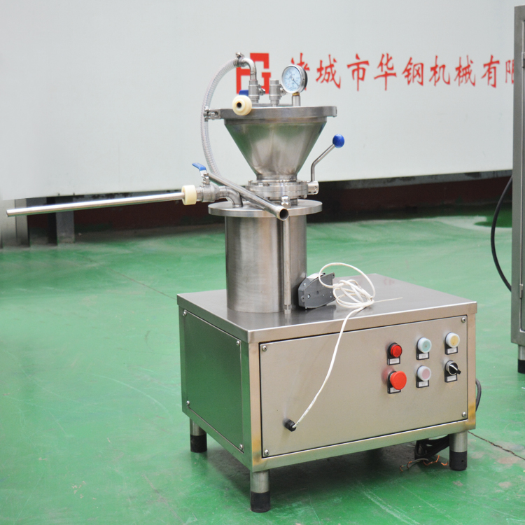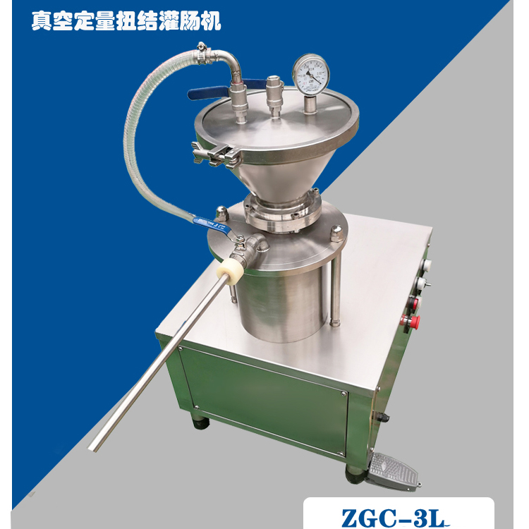 實(shí)驗(yàn)室用小型真空灌腸機(jī)整機(jī)采用不銹鋼制成,外型美觀,結(jié)構(gòu)緊湊合理,密閉防水,易于清洗.用于制作肉醬灌腸,腳踏開(kāi)關(guān)點(diǎn)動(dòng)方式或連續(xù)灌腸,灌裝料斗配有真空裝置,使得產(chǎn)品是處于真空狀態(tài)下進(jìn)行灌裝,可根據(jù)加工需求不同型號(hào)的腸管,可根據(jù)腸衣的大小進(jìn)行更換.