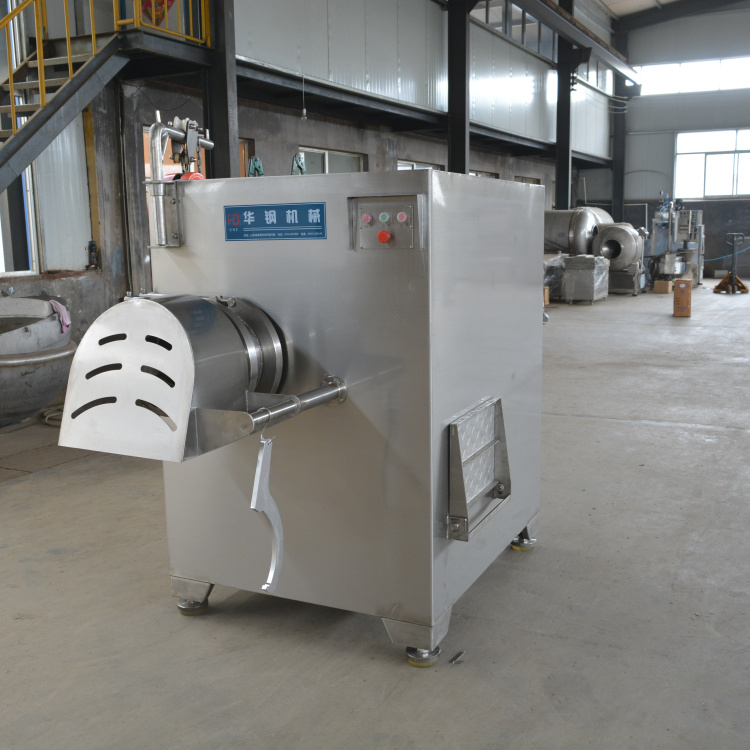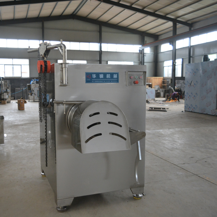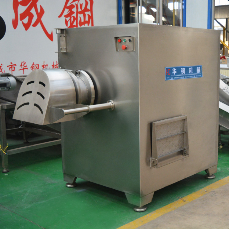 凍肉絞肉機工作主要靠旋轉(zhuǎn)的螺桿將料斗中的原料肉推擠到絞刀箱中的預(yù)切孔板處,利用轉(zhuǎn)動的切刀刃和孔板眼刃形成的剪切作用將肉切碎,并在螺桿擠壓力的作用下,將肉料不斷排出孔板外。是肉食品加工中常用的一種切割機器,它可根據(jù)肉食品加工工藝要求,配用不同孔徑的網(wǎng)眼板,把原料肉切割成多種大小不同的顆粒。