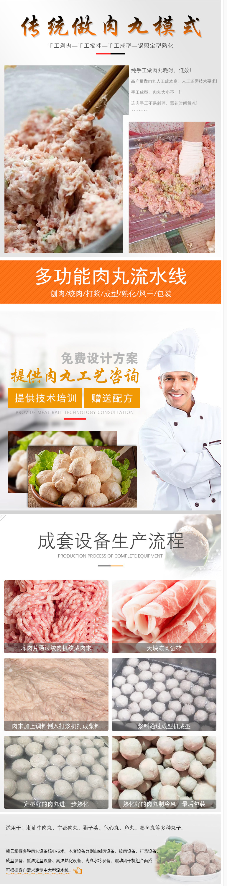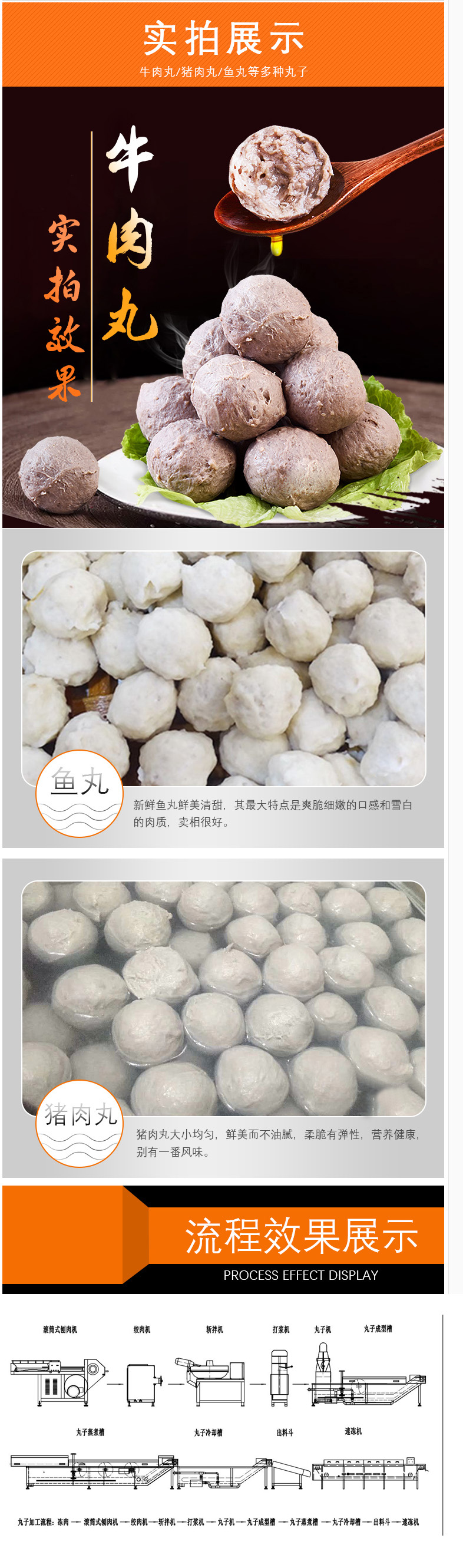 6、肉丸流水線:由成型、蒸煮、冷卻、傳動系統(tǒng)、變頻控制五大部分組成。