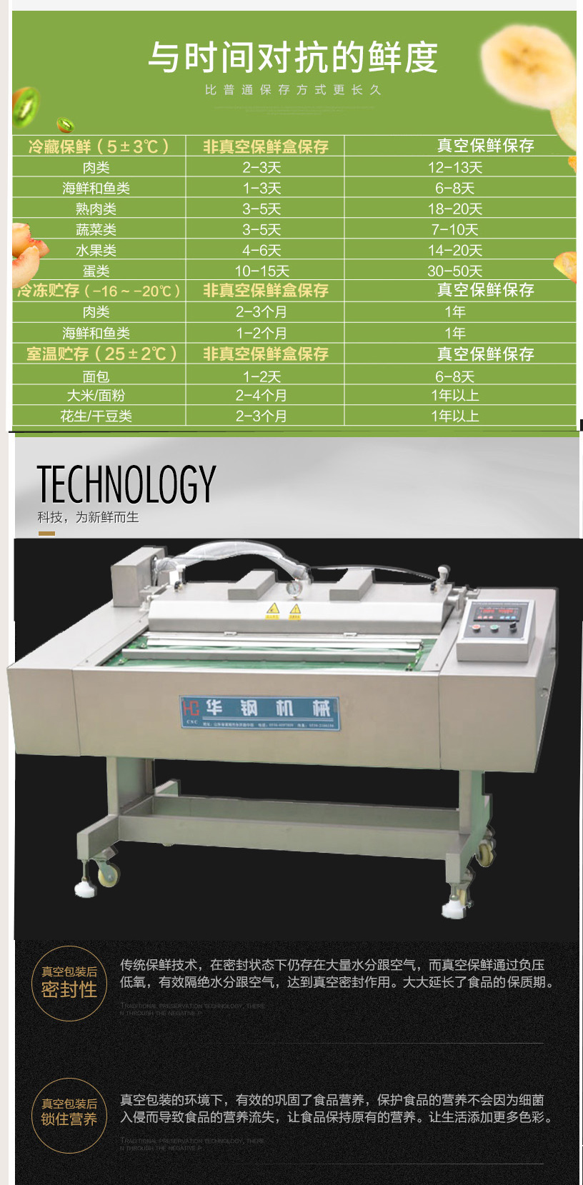 除此之外,真空包裝機充氣包裝物品還有抗壓、阻氣、保鮮等作用,能更有效地使食品長期保持原有的色、香、味、形及營養(yǎng)價值.