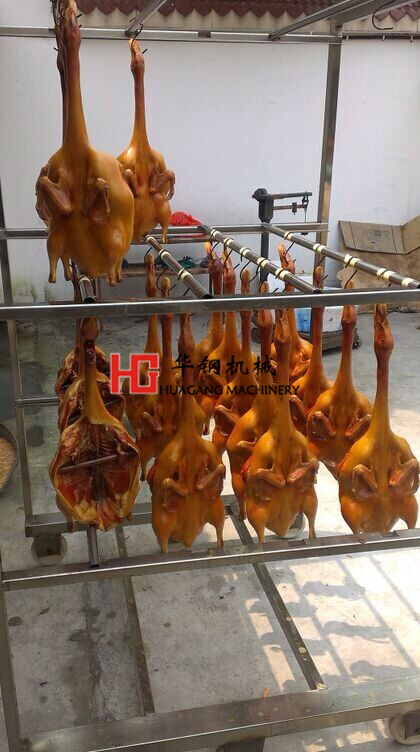 4)用花茶,稻草,松柏枝,樟樹葉,拌勻做熏料,熏至鴨皮呈黃色取出,