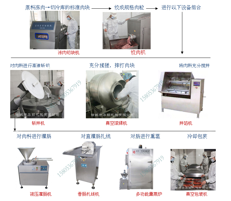 諸城市華鋼機(jī)械廠生產(chǎn)肉制品加工成套設(shè)備,香腸,烤腸成套設(shè)備。并可以為客戶提供整套的前期預(yù)算,投資及車間布局等,一條龍服務(wù)。