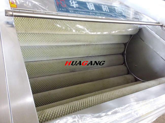 設(shè)備工作原理是利用毛輥的轉(zhuǎn)動(dòng)來(lái)去掉附著在胡蘿卜等蔬菜上的泥土(用毛輥絲較硬的毛輥可直接去皮),大型毛刷土豆去皮機(jī)上部設(shè)有噴淋水管,毛刷清洗去皮機(jī)可對(duì)物料進(jìn)行噴淋沖洗。每隔一定時(shí)間,打開(kāi)電動(dòng)土豆清洗去皮機(jī)設(shè)備端部出料口,物料排除設(shè)備。