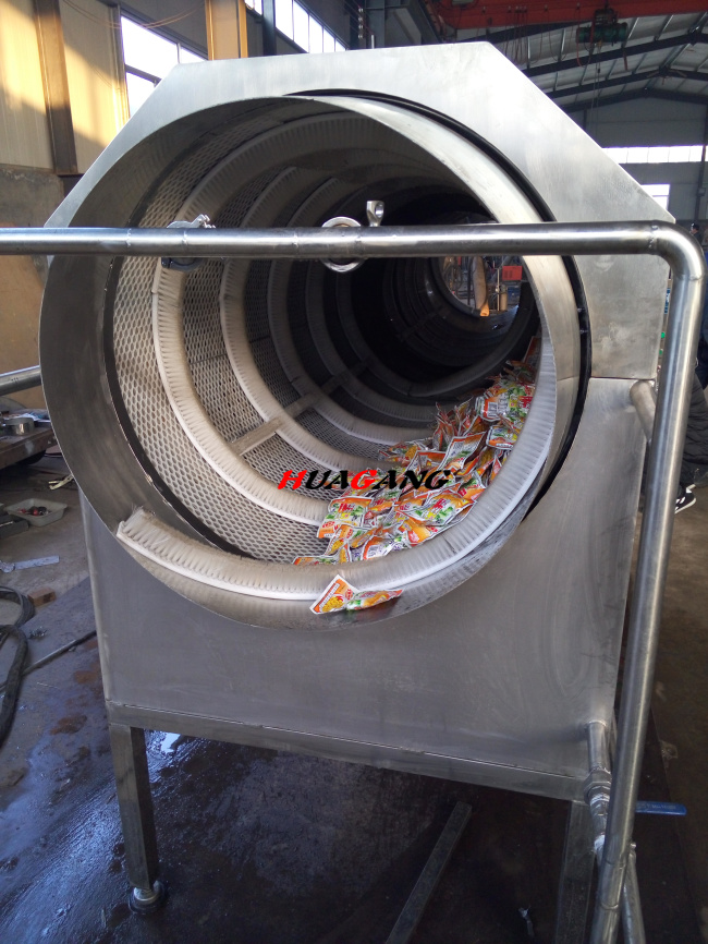 噴淋滾筒式洗袋機(jī) 該設(shè)備適用于袋裝食品:將包裝完畢后袋裝表面的油垢,污漬進(jìn)行去污清洗,使袋裝表面潔凈光澤,本設(shè)備使用不銹鋼制作,將洗段和清洗段進(jìn)行分體式設(shè)計(jì),同步運(yùn)行,具有自動(dòng)化程度高,操作及維護(hù)方便等特點(diǎn)。