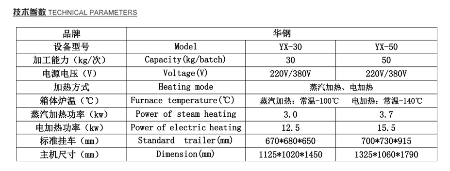 華鋼公司生產(chǎn)的30煙熏爐設(shè)備一直備受廣大肉食中小企業(yè),自營店面,實驗室等廠家的親睞。該設(shè)備不僅外觀精巧,占地面積小,無噪聲,使用方便,而且對生產(chǎn)周圍環(huán)境不會照成污染,安全性能高等優(yōu)點。該設(shè)備材質(zhì)全部采用SUS304不銹鋼材質(zhì)。更符合食品級要求! 該煙熏爐設(shè)備發(fā)煙裝置為標(biāo)準(zhǔn)內(nèi)置發(fā)煙,在爐體內(nèi)底部中心位置,配有高溫發(fā)煙盤裝置,在我們指定的發(fā)煙盒位置可根據(jù)客戶要求,放置 木屑,果糖,木粉,稻殼米糠等煙熏發(fā)煙產(chǎn)品,以對產(chǎn)品進(jìn)行煙熏。當(dāng)客戶的產(chǎn)品通過推車進(jìn)到煙熏爐內(nèi),關(guān)好爐門,通過左側(cè)一系列控制開關(guān),打開烘干開關(guān),發(fā)煙開關(guān)等.來滿足客戶對產(chǎn)品需求的加工生產(chǎn)。爐門裝置配有高溫雙層玻璃視窗,可看到爐體內(nèi)部產(chǎn)品上色情況等。