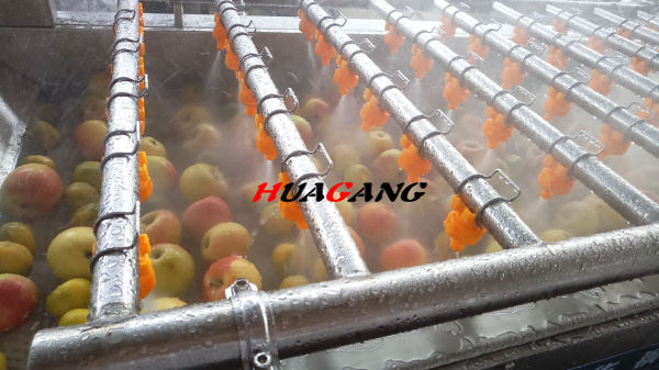 本設(shè)備是針對(duì)柑橘原料的特點(diǎn)專門設(shè)計(jì)研發(fā)而成,主體分四個(gè)清洗步驟: