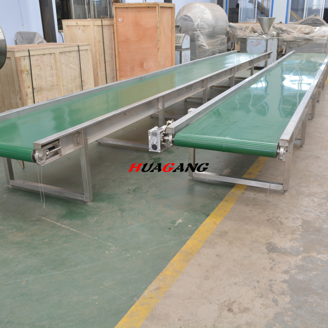 皮帶輸送機又稱帶式輸送機,皮帶輸送線,皮帶流水線,膠帶輸送機,皮帶機。運用輸送帶的連續(xù)或間歇運動來輸送各種輕重不同的物品,既可輸送各種散料,也可輸送各種紙箱、包裝袋等單件重量不大的件貨,適合食品、電子、化學、印刷等廣大行業(yè)。