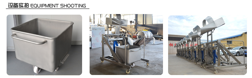 使用液壓油提升,保持上料平穩(wěn),出料干凈,提升高度可調(diào),速度可調(diào),單次提升能力為200KG,是食品廠減輕工人勞動強度的設備,本機采用不銹鋼制作,外型美觀,經(jīng)濟實用,一臺上料機可供幾臺滾揉機上料交替使用,設備四腳帶輪子,可移動,并帶有剎車系統(tǒng),上料時不會隨意移動保證了設備的使用安全.