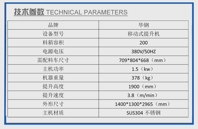 立式提升機是專為200L標(biāo)準(zhǔn)肉料車配套使用的提升設(shè)備,其功能是將料斗車內(nèi)的物料傾倒入配套設(shè)備的料斗中,以完成加料工作。