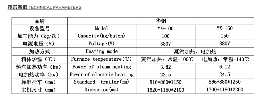 華鋼系列YX-100煙熏爐可根據(jù)客戶產(chǎn)品要求專門定制。