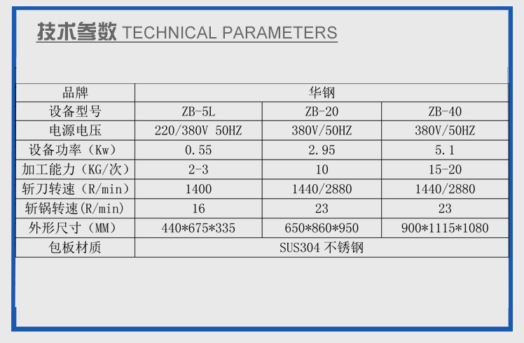 2、斬刀選用進(jìn)口材料經(jīng)特殊工藝加工而成,斬鍋為鑄造全不銹鋼材質(zhì)。